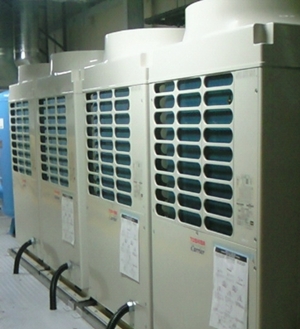 これは福岡のとある巨大な工場に設置した床置形ダクトタイプの室外機達。